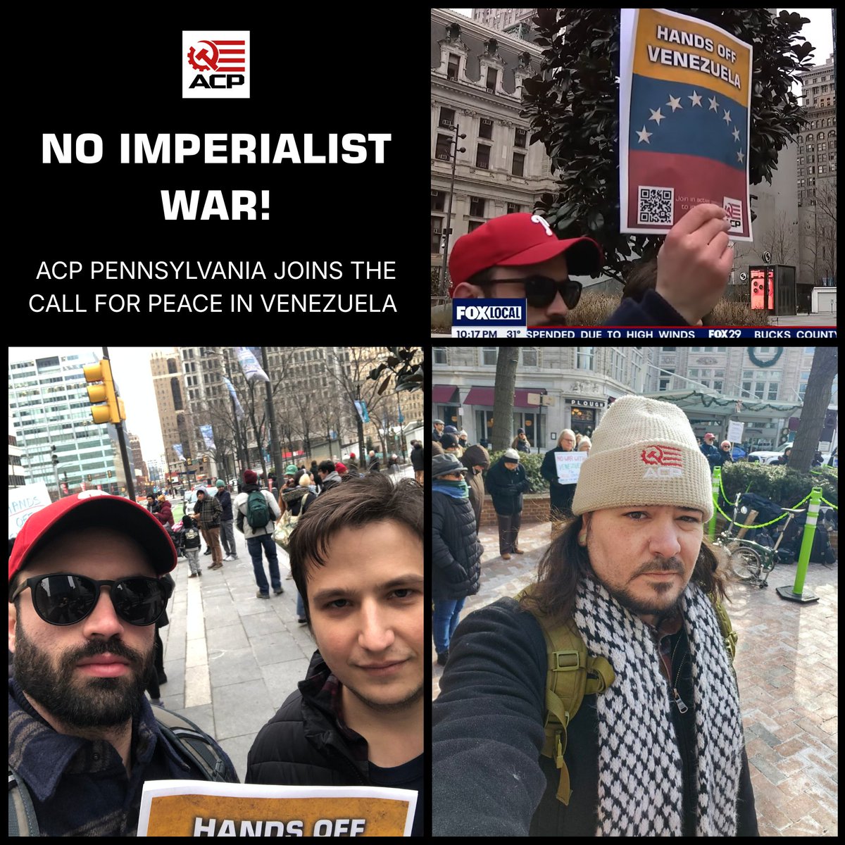 This weekend, ACP PA joined Pennsylvanians across the state to condemn the latest imperialist aggression against the sovereign nation of Venezuela. We demand the immediate cessation of US hostilities and the release of President Nicolás Maduro and Cilia Flores. Hands off