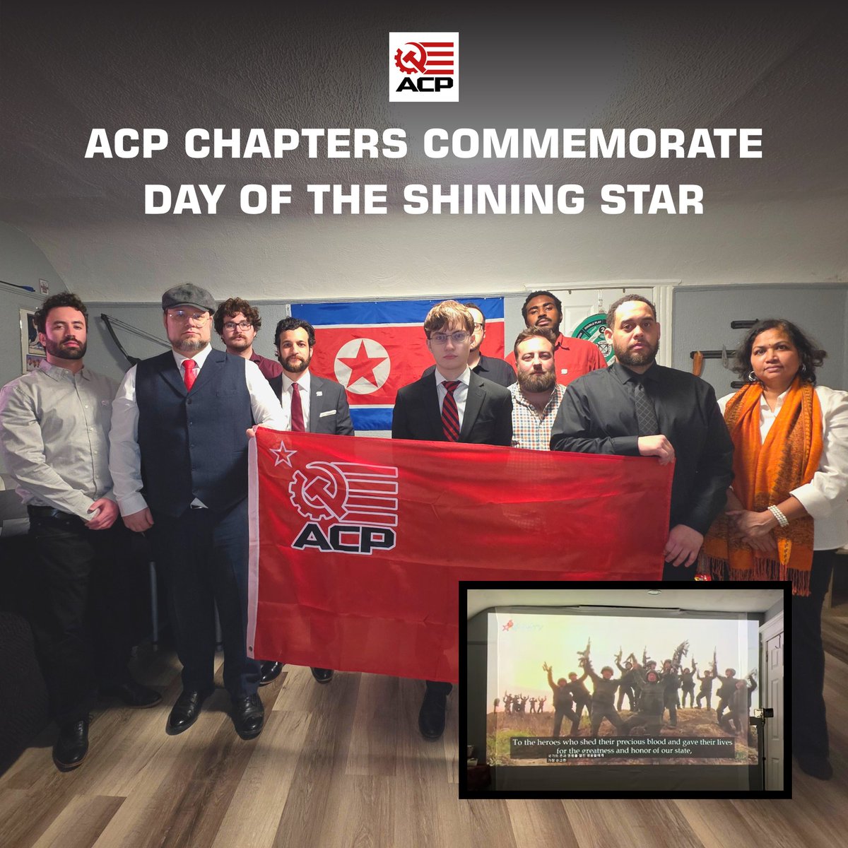 ACP Pennsylvania, @ACP_NJ, and @ACP_NewYork commemorated the Day of the Shining Star in a show of solidarity with our comrades in the DPRK. Cadres reflected on the legacy of the Great Leader Comrade Kim Jong Il and screened a film highlighting the heroic participation of Korean